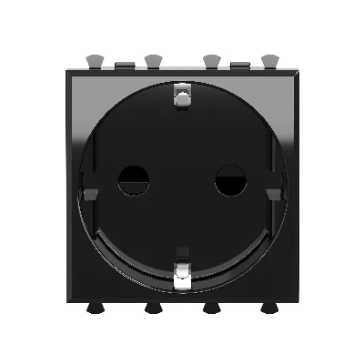 Розетка электрическая с заземлением, со шторками и возможностью установки подсветки, модульная. Предназначена для монтажа в системы 'In-liner Front' и 'In-liner Aero' при помощи рамок-суппортов и каркасов 'Avanti' (код 4400912 и т.д.), подключение оргтехники, бытовых приборов и т. д. Характеристики- диаметр отверстий для ввода кабелей – 3 мм (по 2 отверстия на одну клемму), винтовые зажимы, защитные шторки, шаблон для зачистки кабеля – 11 мм, номинальный ток – 16 A, номинальное напряжение – 230 В, фиксация в подрозеточные коробки глубиной не менее 45 мм при помощи каркаса с лапками (код 4400802) и саморезов. 2 модуля. Цвет- 'Черный квадрат'.